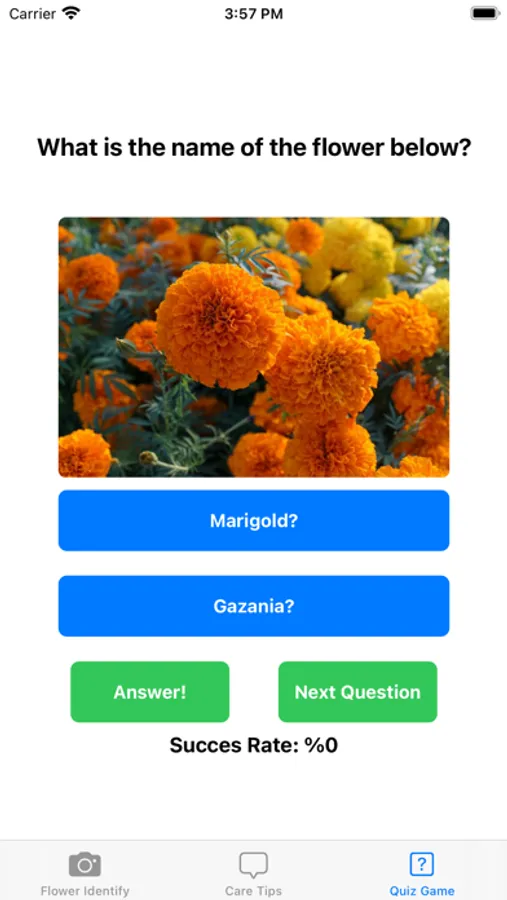 Flower Identify application also has a quiz game. You can increase your ability to recognize flowers with this game. Solve more questions and learn about flowers!