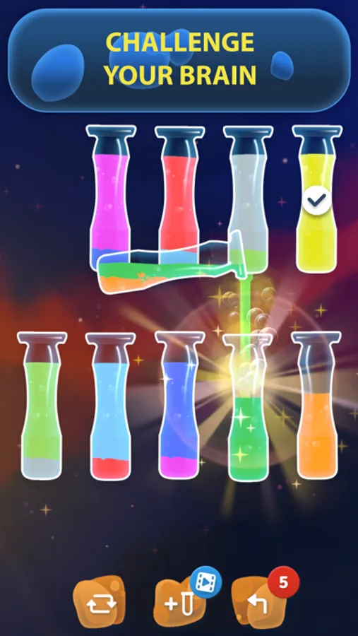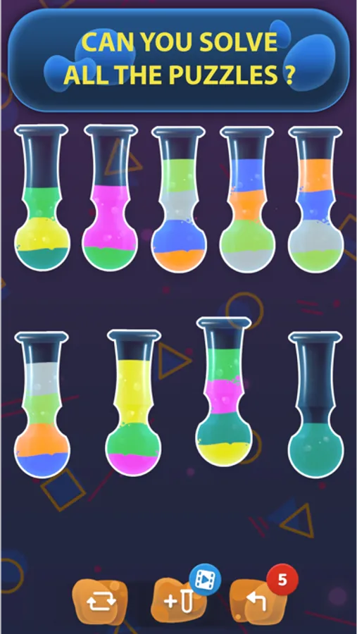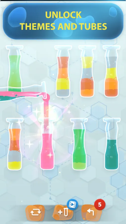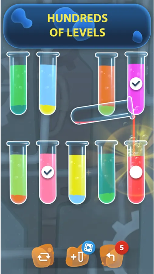 As you master the game, the number of tubes will increase and it becomes harder to solve. Try not to get stuck, but don’t worry, you can always restart the level at any time or add an extra tube to help you out.