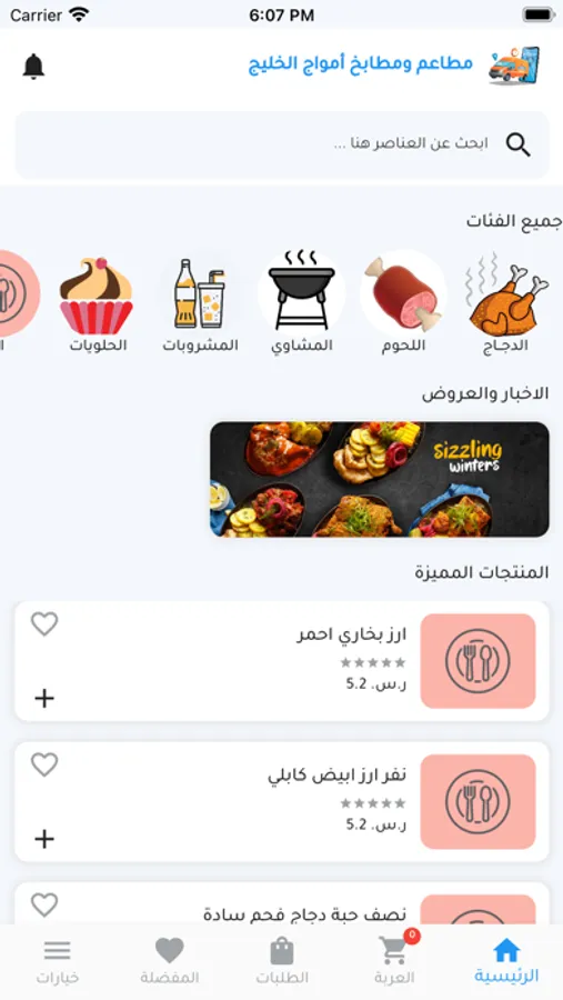 ابلكيشن مطعم يساعد المستخدمين ف تصفح المنيو وطلب طلبات الاكل