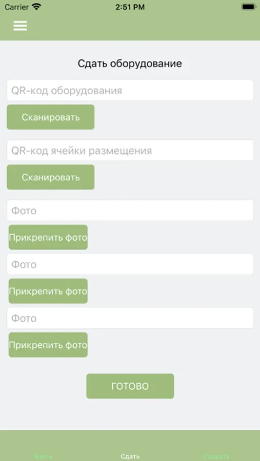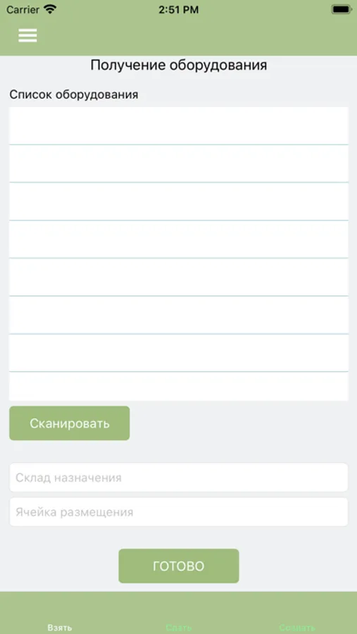 Приложение предназначено для удаленной приемки и сдачи оборудования.