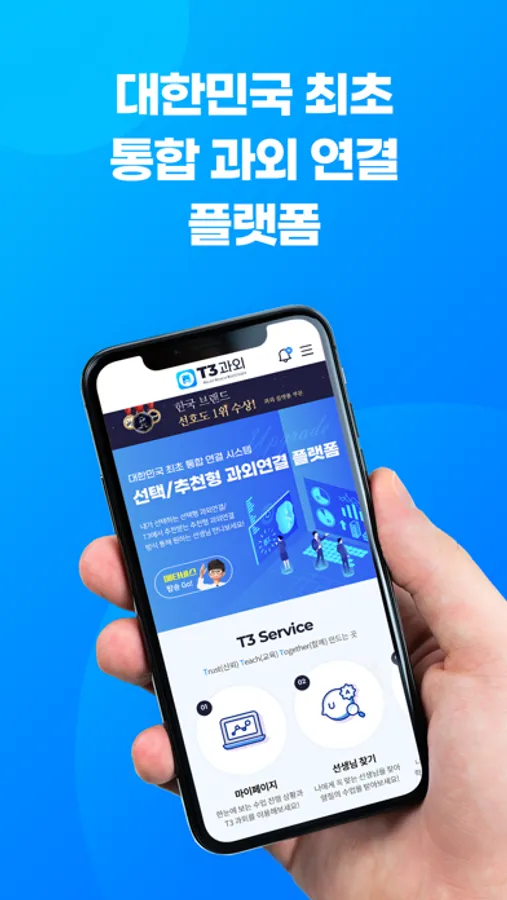T3플랫폼을 통해 선생님을 직접 선택할 수 있는 선택형 연결방식과 T3회사를 통해 학생 성향에 맞는 선생님을 추천받는 추천형 연결방식으로 과외연결이 가능하므로, 실력과 신분이 검증된 선생님과 보다 빠른 과외연결이 이루어집니다.