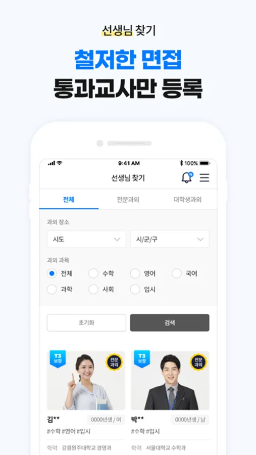 철저한 신분확인을 위해 사전 면접을 통과한 선생님들만 등록가능