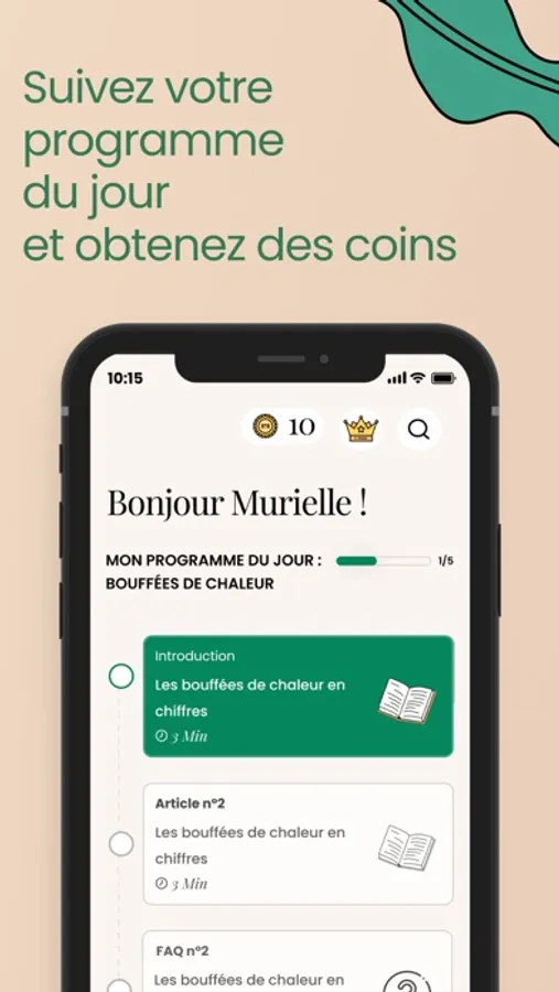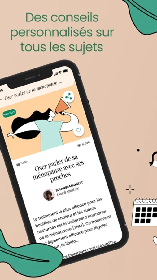 L'application comprend également plus de 80 articles explicatifs écrits par des médecins pour vous aider à comprendre votre corps en cette période de transition hormonale. Le but de ces articles est de pallier au manque d'information de qualité donnée aux femmes qui s'interrogent sur cette période de leur vie.