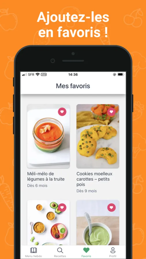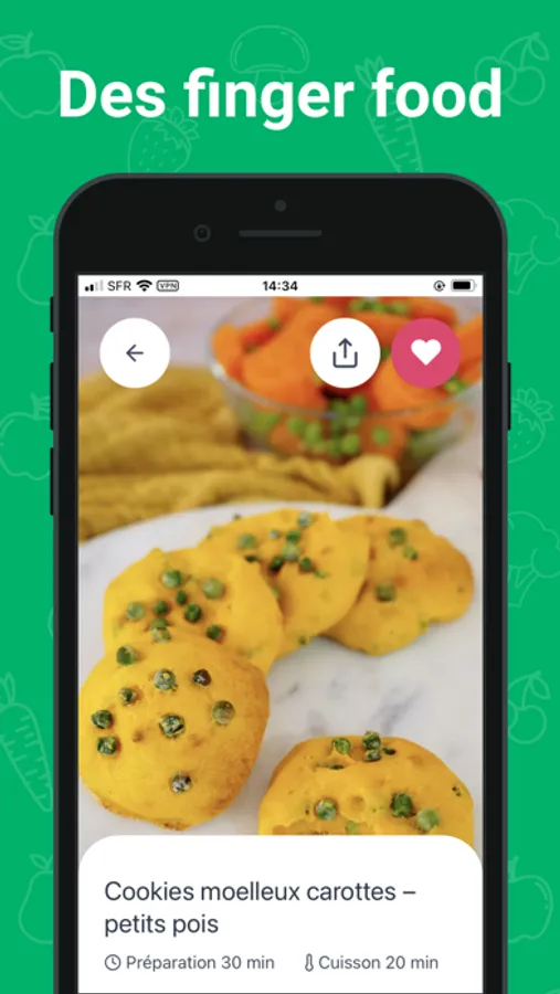 - Ajoutez les recettes en favoris pour les cuisiner plus tard.