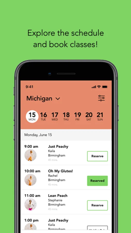 + Plan and book classes for the week ahead and quickly add them to your calendar