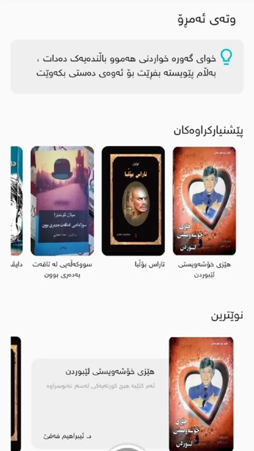 ئەپڵیکەیشنی کتێبخانەی زیرەک کتێبخانەیەکی کوردی بۆ خوێندنەوەی هەزارەها کتێب و بەردەوامیش کتێبی نوێ زیاد دەکرێت.
