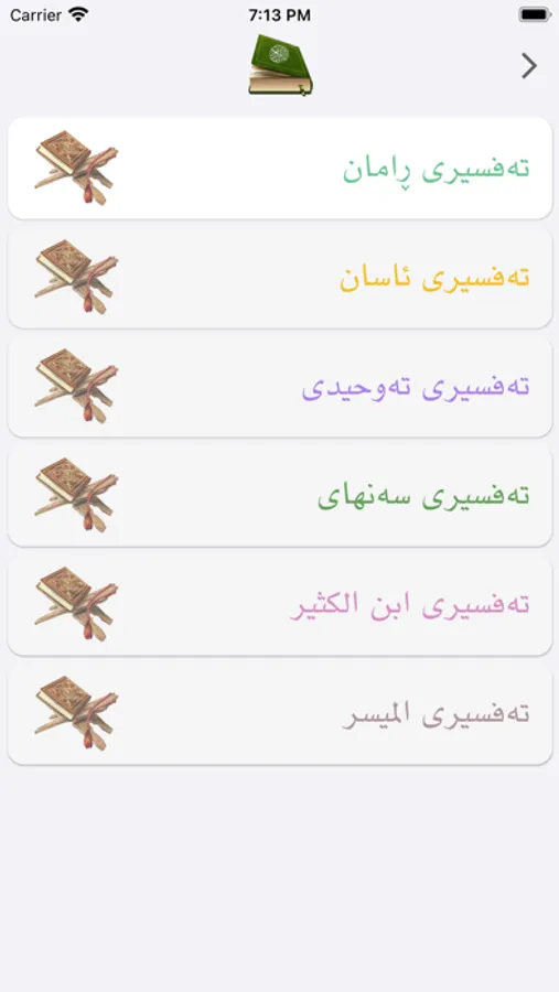٨- تەفسیرە کوردیەکان : تەفسیری (ڕامان، ڕێبەر ،ئاسان، المیسر بە کوردی، سەناھی، لاتینی بادینی، پوختە... ).