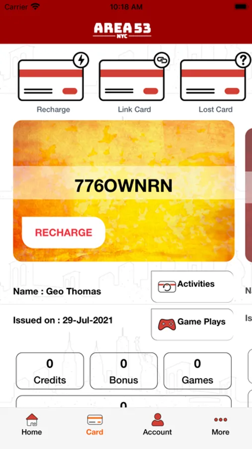 Become a member and join the Area 53 NYC family! Use this App to reload your arcade points and keep track of your account.