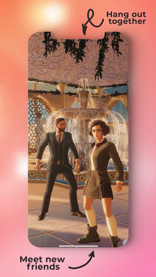 Meet new friends and experience events together. Seamlessly between 3D worlds and chats and start private chats with your friends.