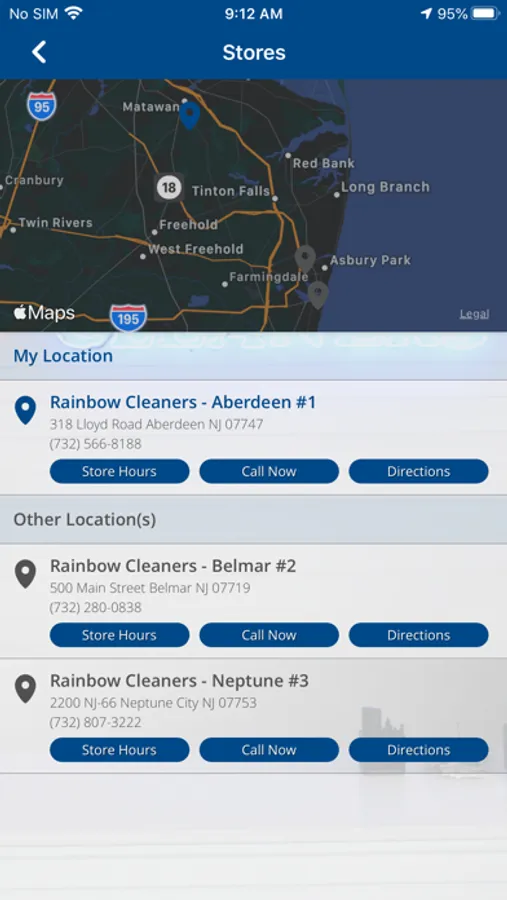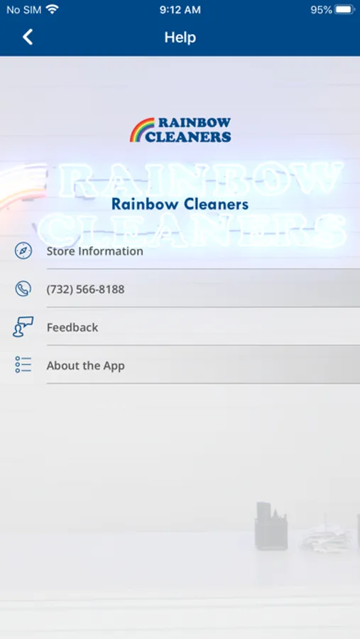 5) Quickly contact Rainbow Cleaners by phone or email and access their website all directly from your device.