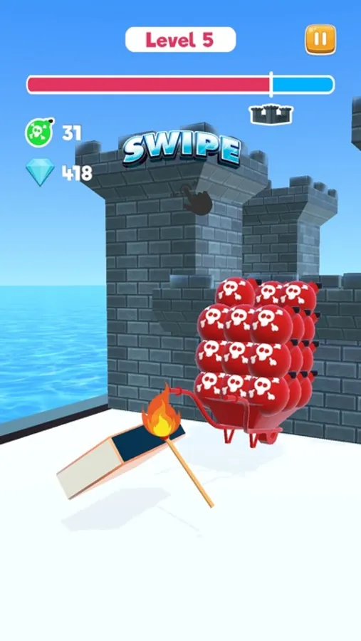 Bomber Rush is a very fun game to play! Collect all correct colored bombs and explode the castle!