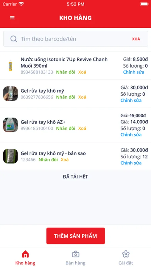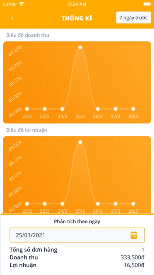 - Báo cáo doanh thu/lợi nhuận theo ngày/tuần/tháng.