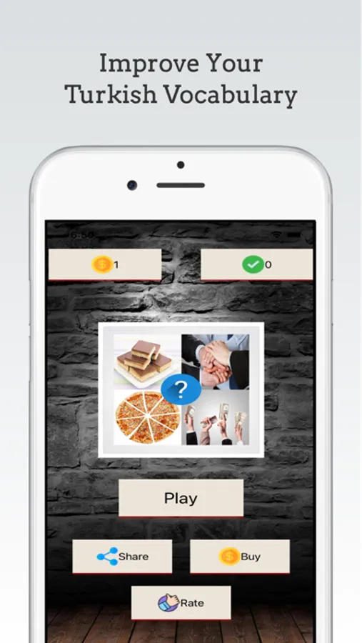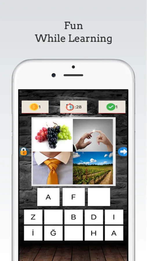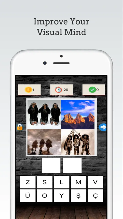 With this word game you can improve your turkish word vocabulary. Application basically give you 4 picture about 1 turkish word with your visual mind you try to solve answer there are thousands words available in this game.
