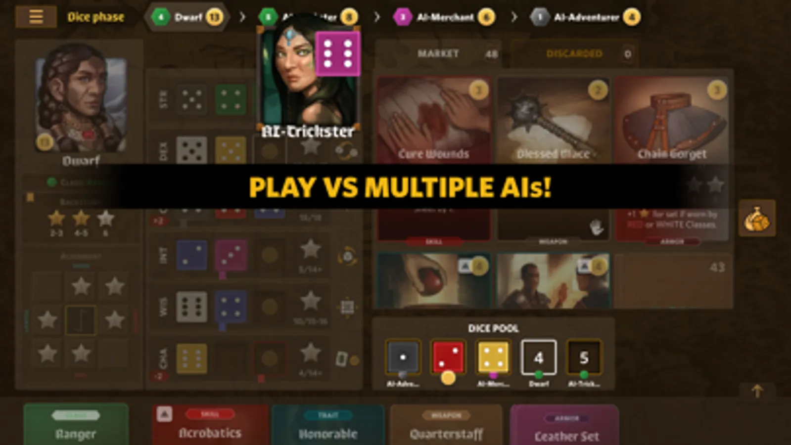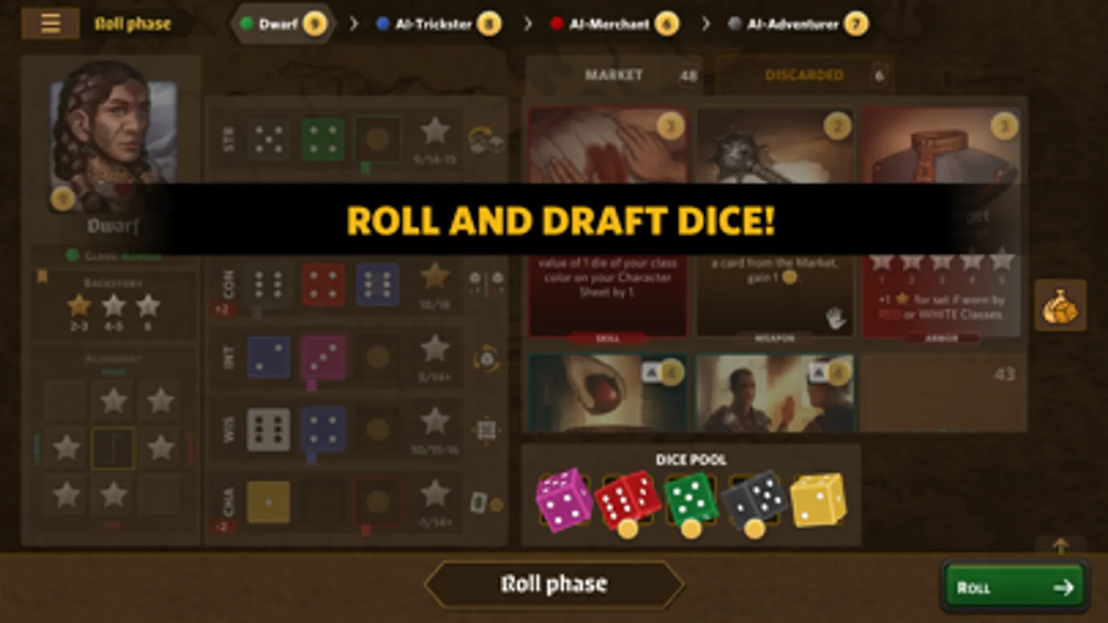 Roll Player is a digital adaptation of a dice manipulation, strategy board game where you will compete to create the greatest fantasy character in the role-playing world!