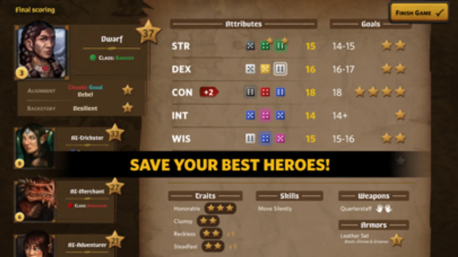 Gain skills and discover your hero’s traits to prepare them for their journey.