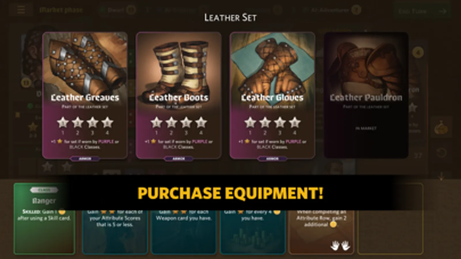 Purchase weapons and armor to outfit your hero!