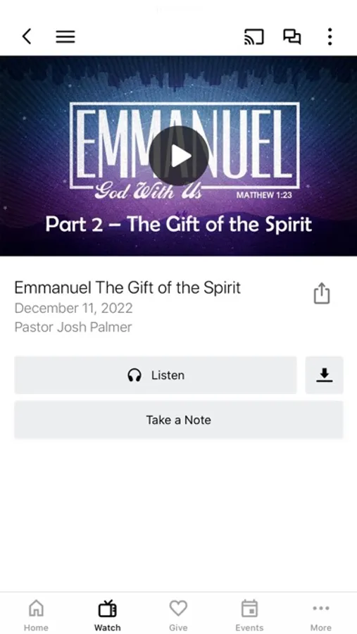 This app will help you stay connected with the day-to-day life of Destiny Pointe Church. With this app you can: watch or listen to past messages; stay up to date with push notifications; share your favorite messages via Twitter, Facebook, or email; and download messages for offline listening.