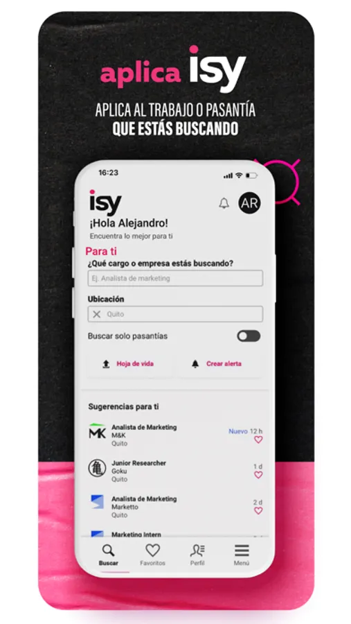 Encuentra trabajo como estudiante o profesional en la mejor app de empleos de Ecuador. En isy, tenemos la mejor oferta de trabajo, pasantías para estudiantes y para jóvenes profesionales, por lo que, si buscas una opción para ganar experiencia o avanzar en tu carrera profesional, aquí encontrarás todo lo que necesitas.
