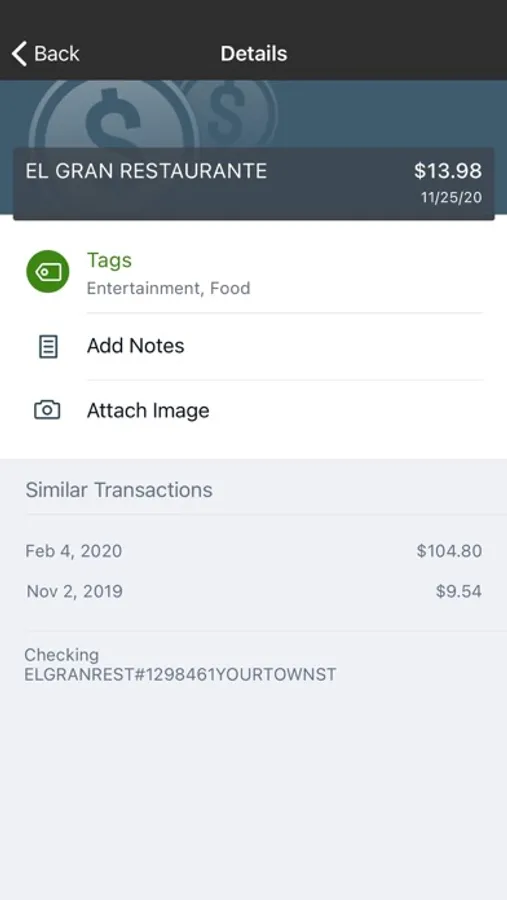 • Keep your transactions organized by allowing you to add tags, notes and photos of receipts and checks.