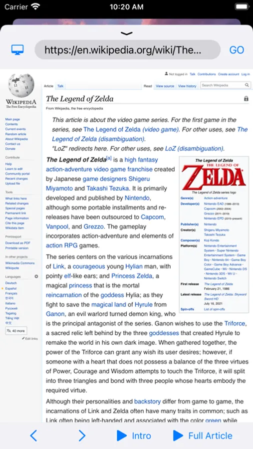 • Listen to all Wikipedia articles; almost infinite contents just a few taps away.