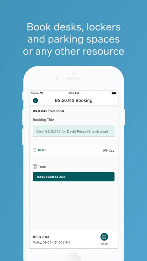 3) Book a desk, locker, shower or parking space using our sophisticated scheduling tool.