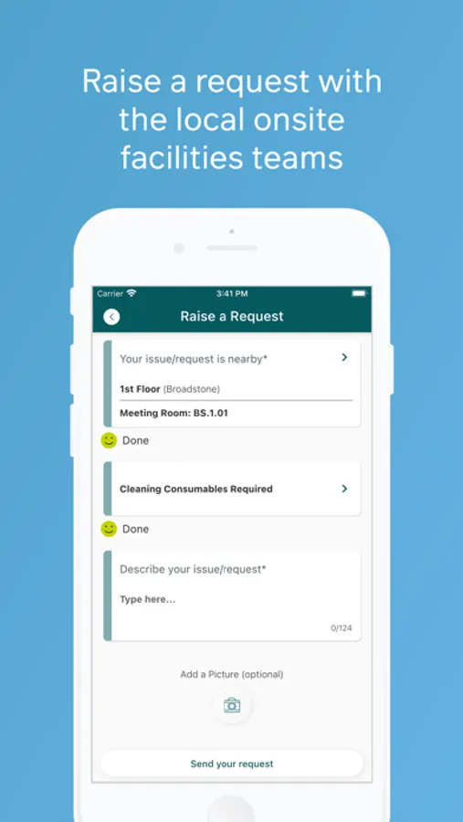 6) Raise a request to the onsite facilities team if you need help or spot an issue.