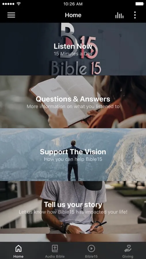 God has given us the Bible as a source of inspiration and to provide answers to life‘s most puzzling questions. Let Bible15 keep you engaged with God by investing 15 minutes a day listening to the most popular book in the world.