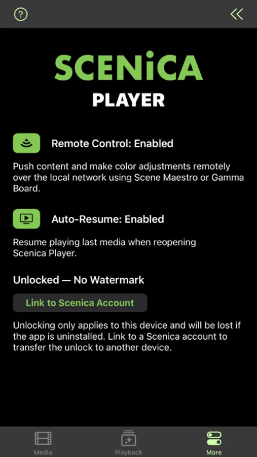 An in-app purchase is required to unlock Scenica Player and remove the watermark. A separate purchase is required for each device the player is installed on.