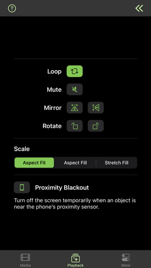 Is the content to play perfectly matched to the screen dimensions? If not, three resizing modes are available. Choose to either fit or fill the screen, or just ignore the aspect ratio and stretch the image to the edges.