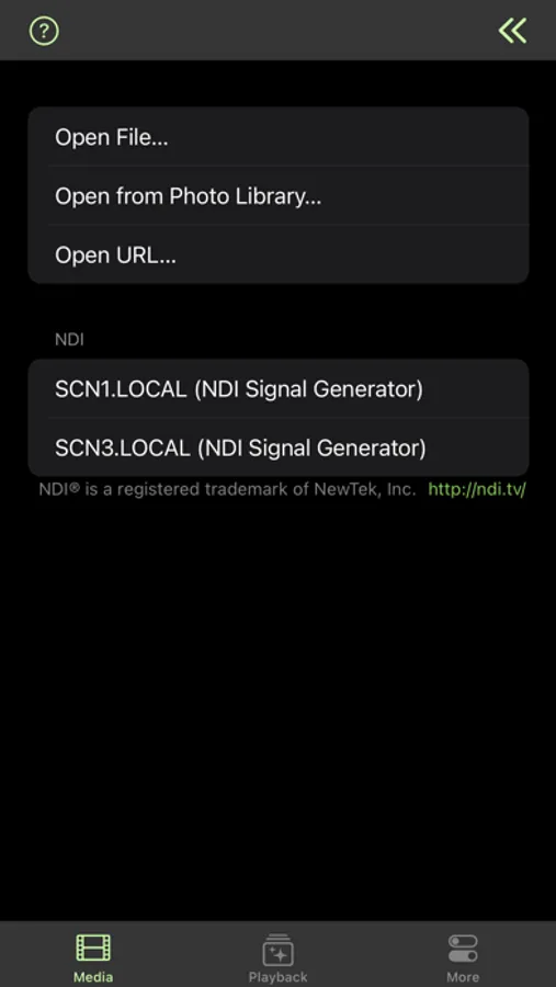 Scenica Player can be used to play content from NDI sources it finds on the local network. This can include live cameras or video software with NDI outputs.