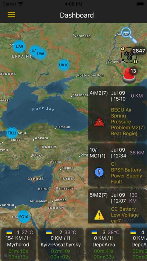 - Shows the train on a map including its real time Digital Twin, location, faults and CCTV on the same screen