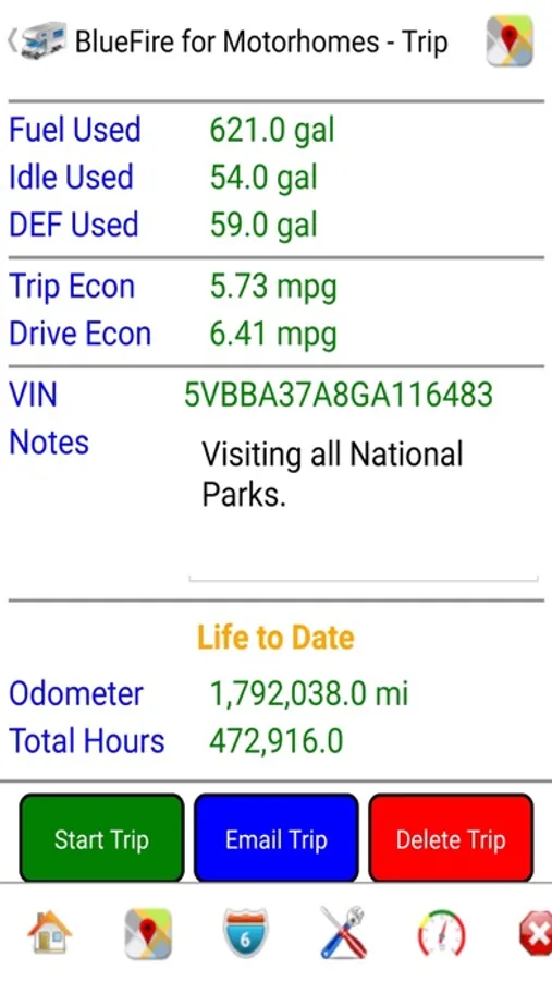 - Trip Recording - Record information about your trip to compare performance with previous trips. Trips can be emailed and saved in an Excel .csv file.