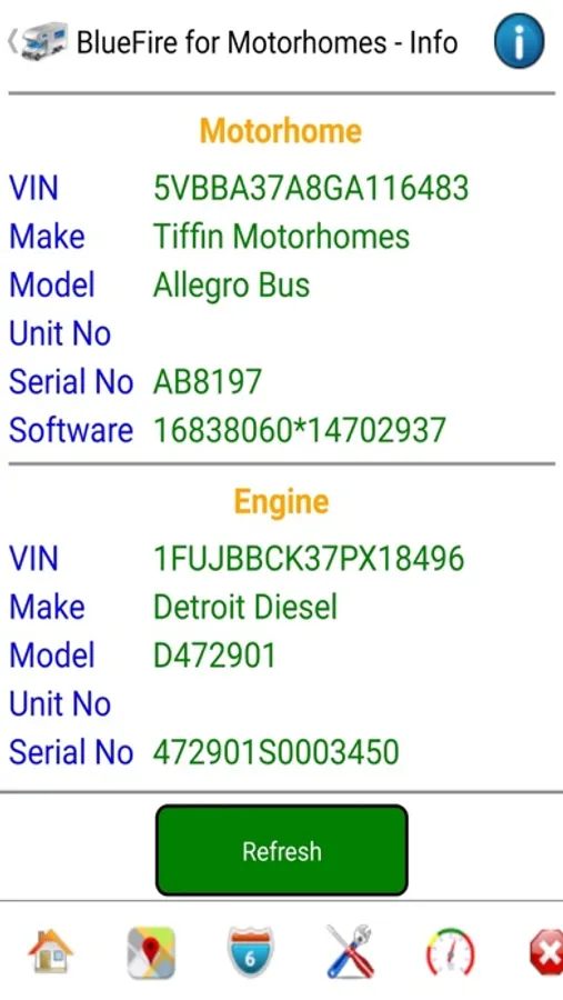 BlueFire Apps connects to your truck, motorhome, yacht, etc via the BlueFire Data Adapter. The Adapter plugs into the 9 pin or 6 pin diagnostic port of your motorhome and sends J1939 and J1708 information to the app via Bluetooth. The Adapter is available for purchase from Amazon and from our store at https://bluefire-llc.com/store.