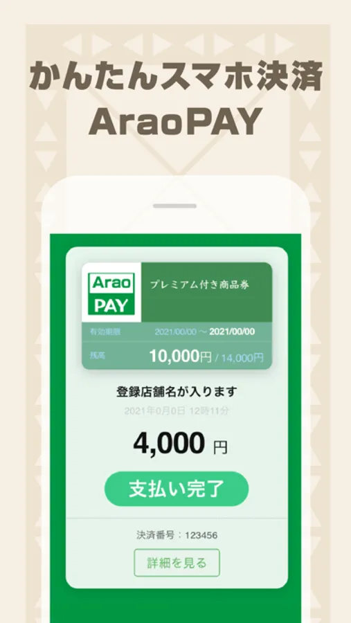 「AraoPay」はスマホひとつで簡単に電子商品券の申込・購入・利用ができるアプリです。