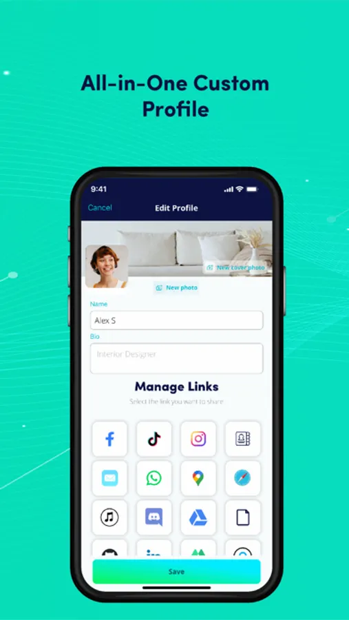 Completely customizable Ting profile, that enables you to edit your profile and cover image. Personalize the names of the links you share and drag and drop into the order that suits you.