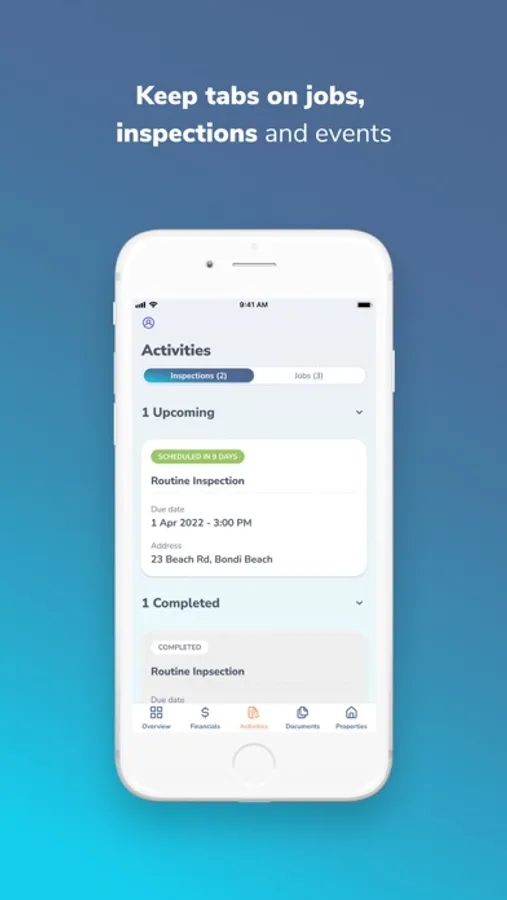 - Keep tabs on the status of jobs and inspections linked to your properties