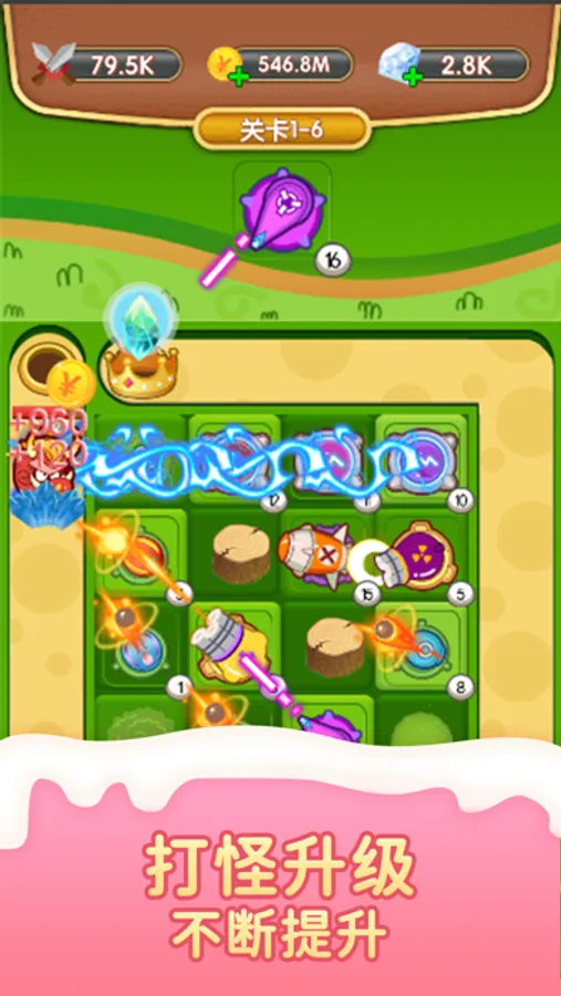 合并升级炮塔,有策略的搭配各类炮塔,抵抗不同的怪兽;
