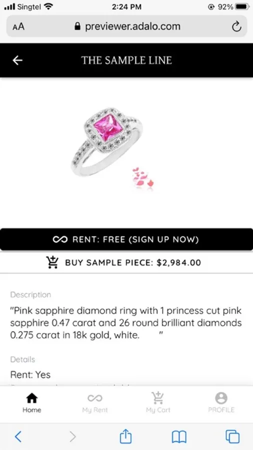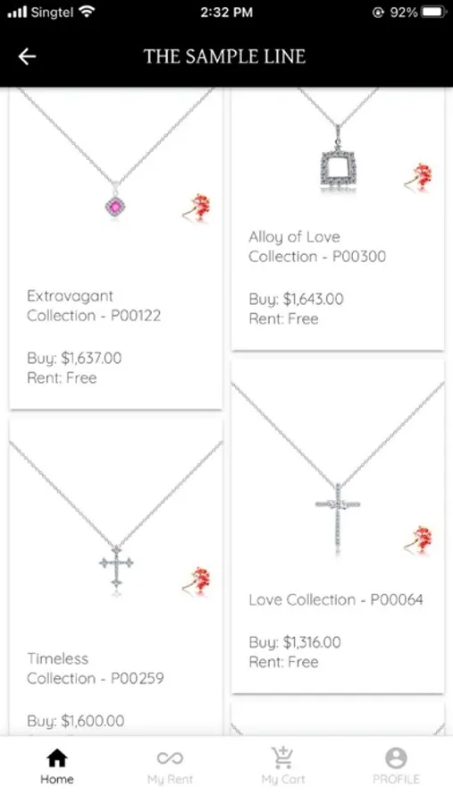 The Sample Line was created for users to rent different pieces of diamond jewellery every month