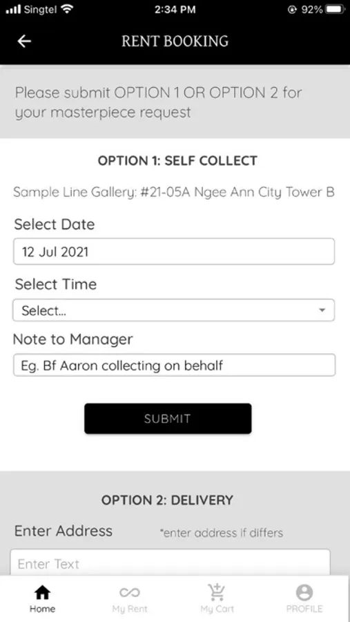 After your membership is confirmed, you can now use the The Sample Line app to view the virtual gallery, order, select a delivery time, and schedule a return. Free delivery is now included!*