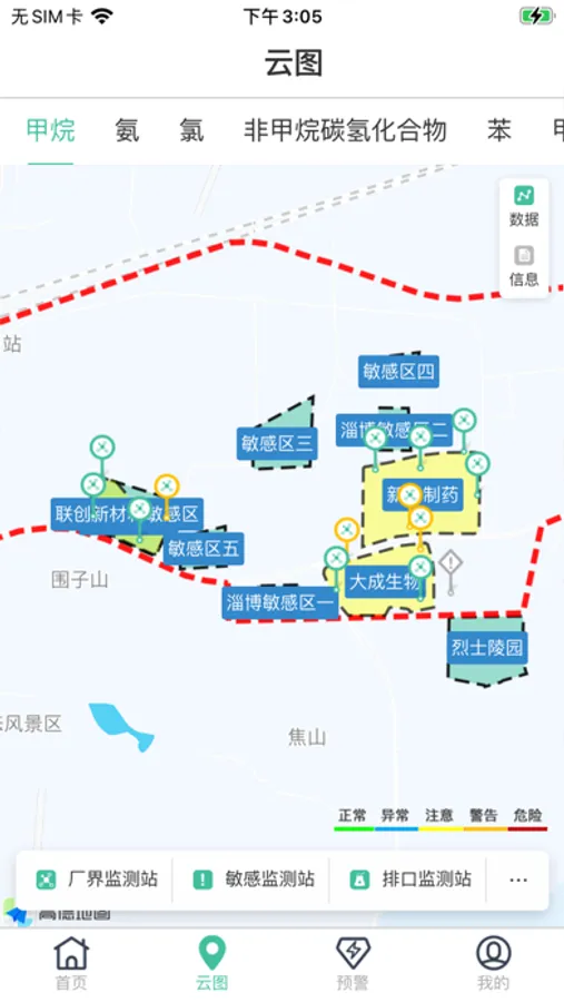 配套有毒有害气体环境风险预警系统的APP应用,实现数据展示、查询、分析以及预测、预报和警示环境风险状况等功能。结合地图实时显示园区内全部监测点的站点信息、监测数据,实现不同类型区域、不同功能点位、不同时间段的环境空气质量状况统计和对比,发现污染变化规律,定位污染最严重的区域和时间段,为环境执法和决策提供更为及时有效的依据。