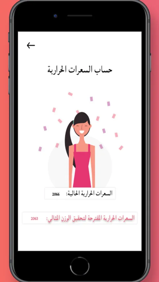 كما يتميز التطبيق بإعطائك السعرات الحرارية المقترحة لك لتحقيق هدفك للوصول الي الوزن المثالي