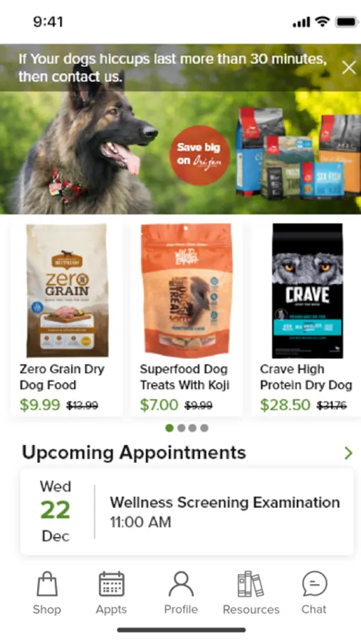 • Have an urgent question about your pet? Get answers from professionals with the in-app chat