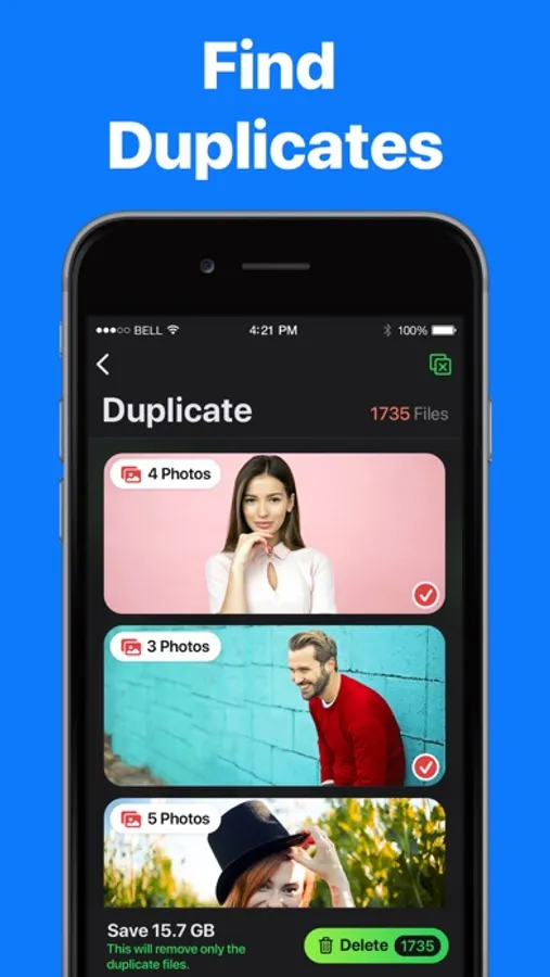 FASTEST, MOST ACCURATE, EFFICIENT AND FREE GALLERY CLEANER scans for exact duplicates, smartly groups similar photos, and create collections of photos/videos according to DATE and SIZE, making it easy and fun to clean your gallery. Delete UNLIMITED files, no limits.