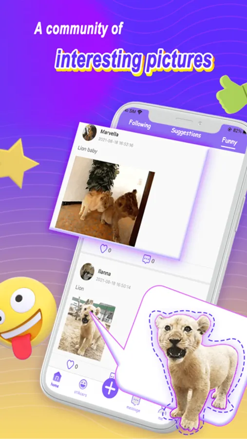 We provide a large number of emoticons for you to download and use. You can also create and share funny stickers here, and share it with other users.