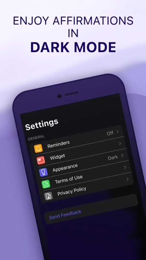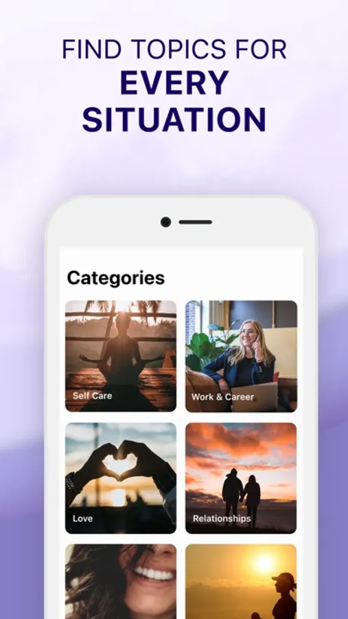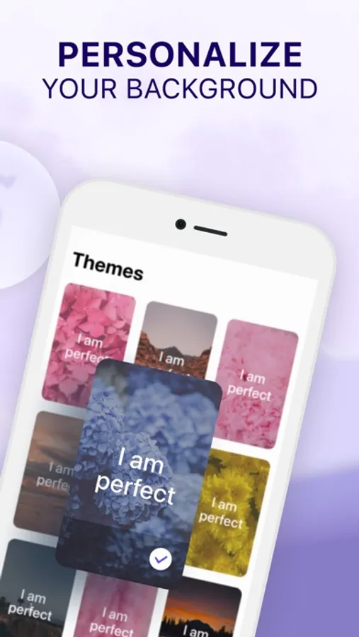 The Affirmations app includes a wide range of topics such as self-care, positive thinking, and others, as well as a variety of colorful themes to choose from.