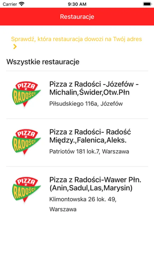 • sprawdzisz koszt dowozu pod dany adres,