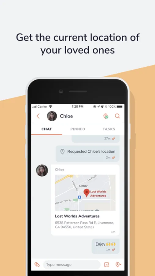 If permitted by the user, use the "Location Ping" feature to instantly check location of a contact in your trusted group.