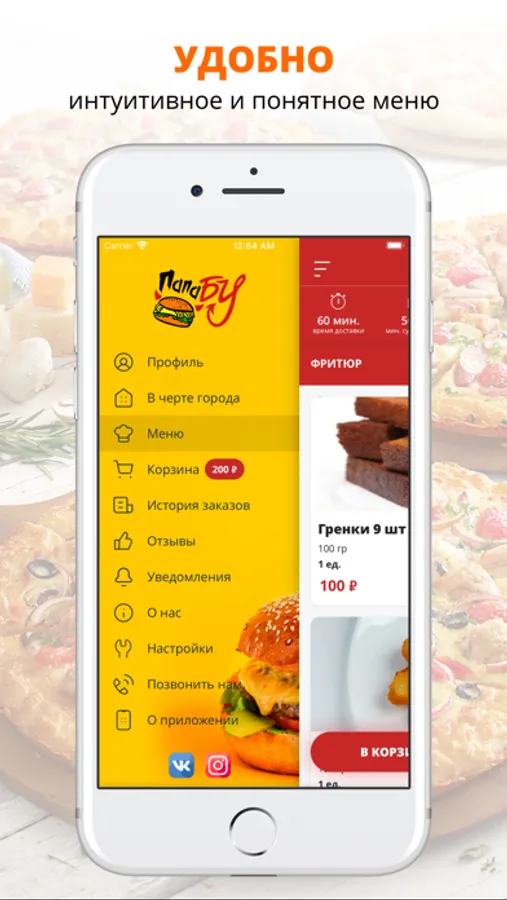 Приложение Папа Бу — это удобный способ заказа еды домой или в офис! Мы готовим наши блюда из качественных свежих ингредиентов и доставляем еду в городе Вязьма быстро и бережно.
