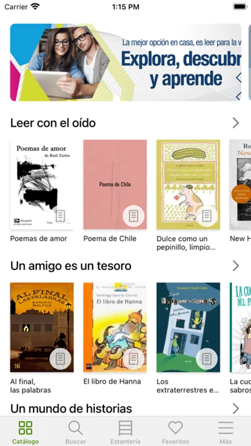 Los usuarios tienen acceso a miles de títulos de literatura infantil y juvenil, literatura para adultos, revistas, audiolibros, en diversas áreas del conocimiento y diferentes idiomas. Así como actividades y textos enriquecidos para favorecer la comprensión lectora y reforzar el desarrollo de la alfabetización.