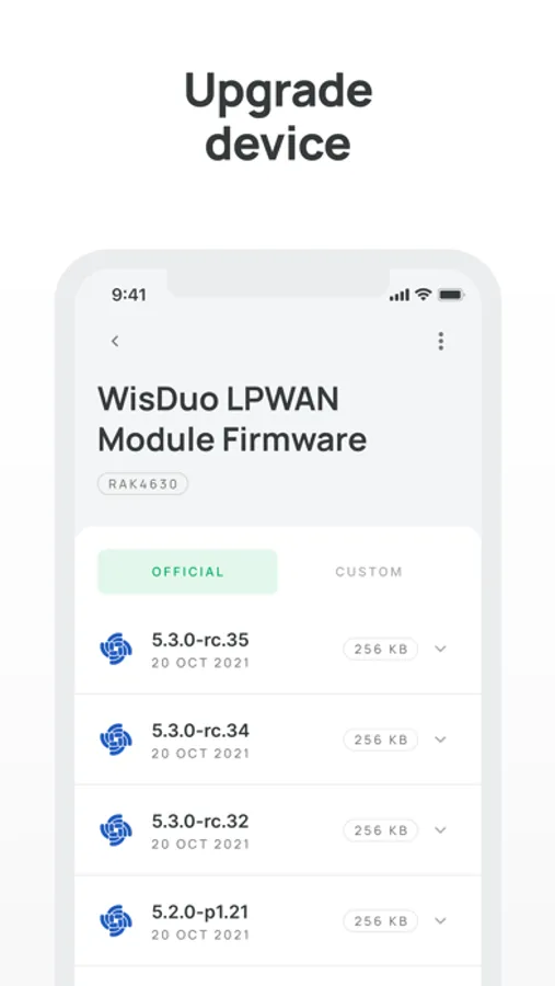 Keep the devices open to official RAK firmware updates, or bring your own custom firmware. Import firmware on a click, store them on the cloud and update as you go.